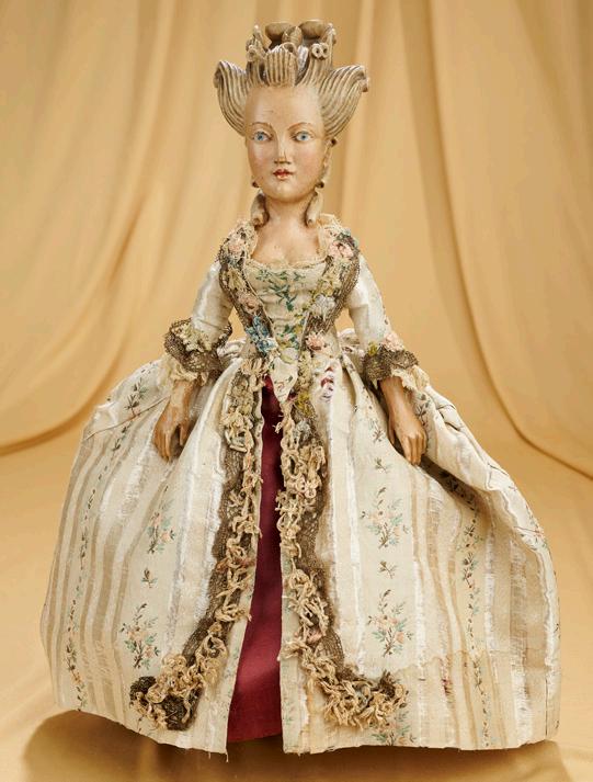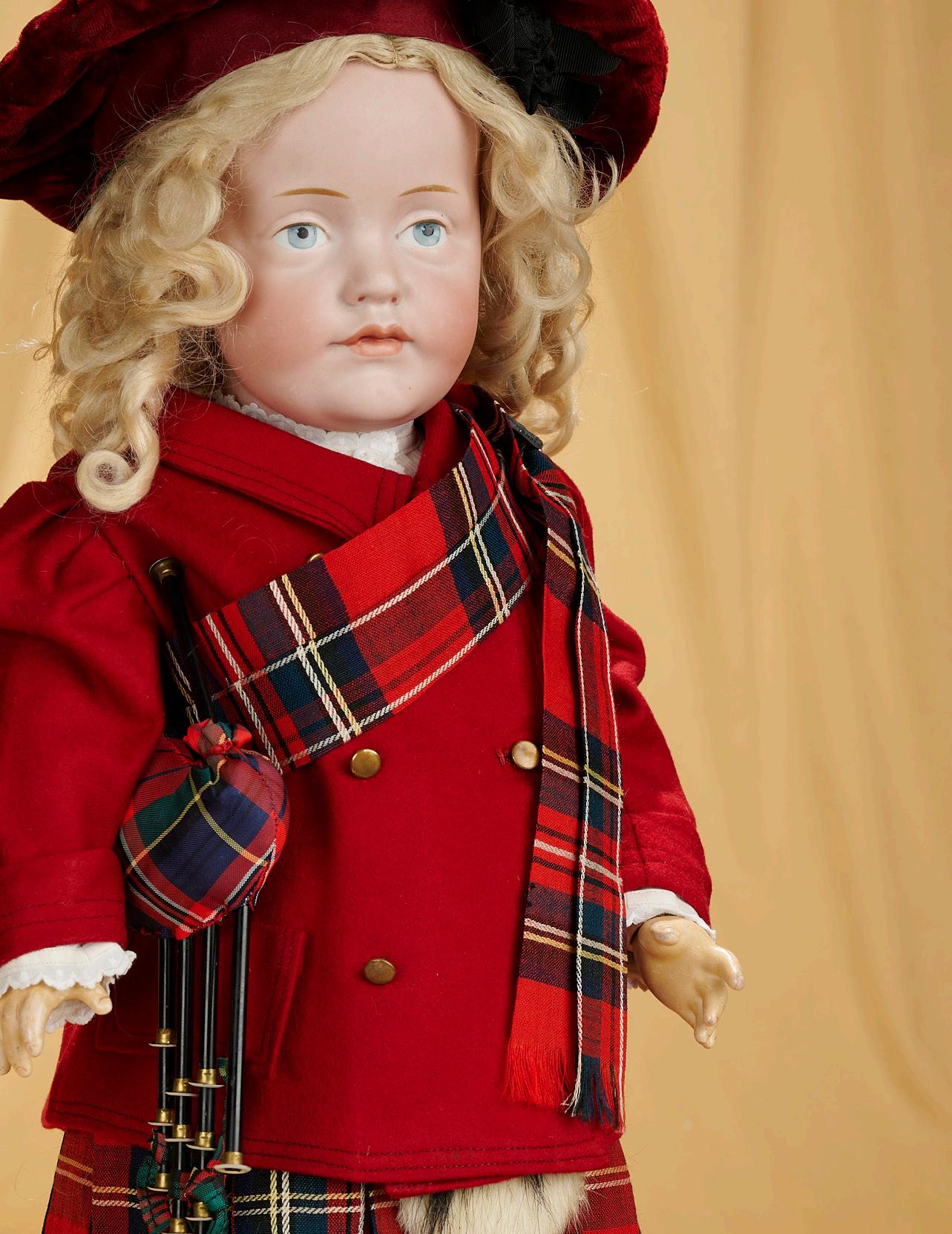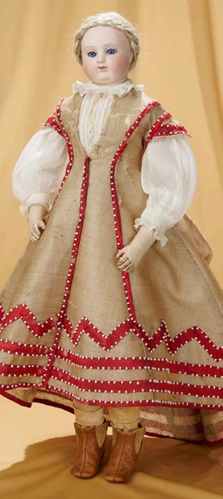so rare it is. In the same genre is the wonderful 22” painted eye character by Marseille with exceptional bisque and modeling. Art character dolls by Gebruder Heubach also headline the auction with rarities including the sought-after Princess Juliana. Collectors of French bébés will be delighted as well with several splendid examples from Leon Casimir Bru, as well as early models by Emile Jumeau and a splendid 13” bébé AT by Thuillier. Poupées also grace the day including a lovely early example from Adelaide Huret and wooden bodied smiling poupées by Bru. Collectors of American dolls are especially graced with early Volland Raggedy Ann dolls, rare examples of Babyland Rag, and a charming group of Schoenhut dolls including Schnickelfritz along with his partner, a Schoenhut Rolly-Dolly with Schnickelfritz face. The auction includes more than 300 dolls of the finest order, all featured in the a beautiful full color photograph. Collectors are urged to plan to attend the auction to view these rare dolls in person, but the auction is also streamed in a live online presentation. Bidding is welcome in attendance, online, by telephone, or by traditional absentee bidding. x