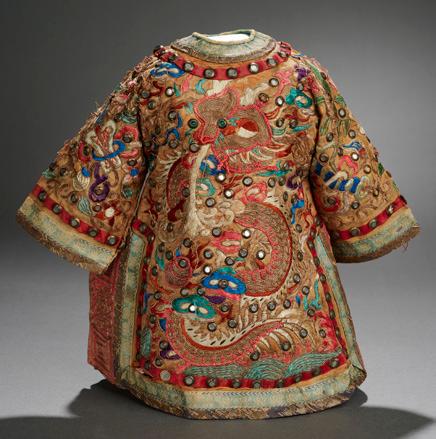 with bordered trims, gilt buttons, embroidery, and with original matching slippers and headdress. $1800/2300