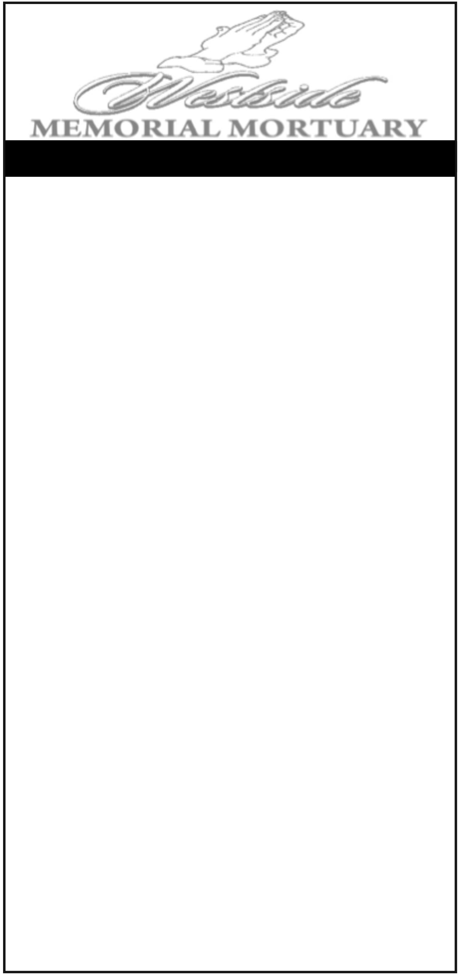 Funeral arrangements have been entrusted to Evergreen Mortuary, located on Parkgate & Village Road.