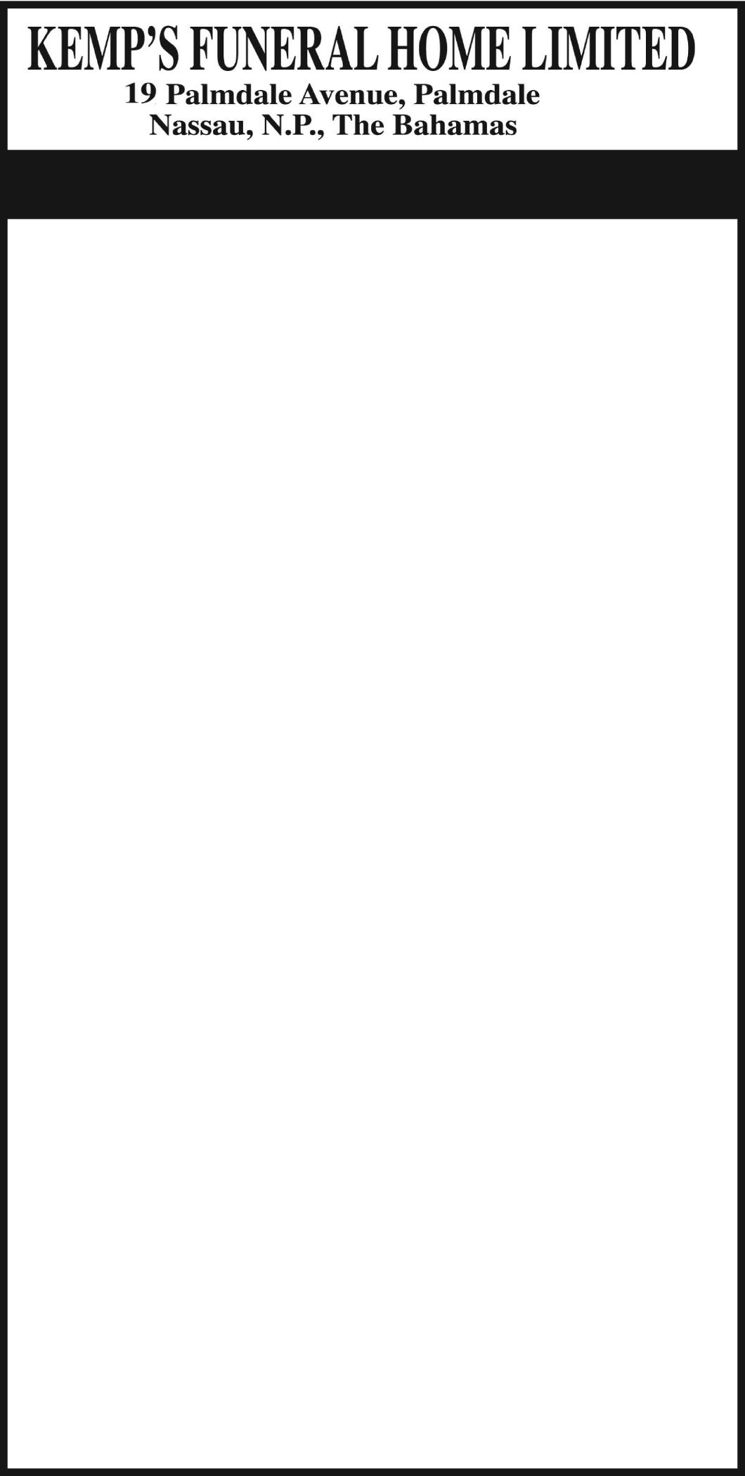 Viewing will be held in the “Royal Suite” at Westside Memorial Mortuary, Hanna Hill, Eight Mile Rock, Grand Bahama on Friday, September 5, 2025 from 12:00 noon to 6:00p.m.