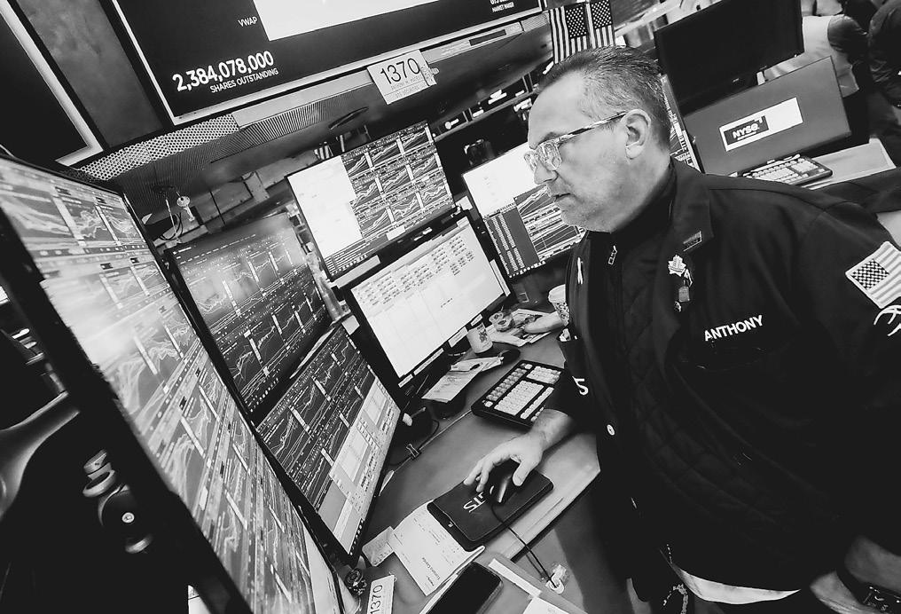 SPECIALIST Anthony Matesic works at his post on the floor of the New York Stock Exchange, Monday, Sept. 15, 2025. Photo:Richard Drew/AP