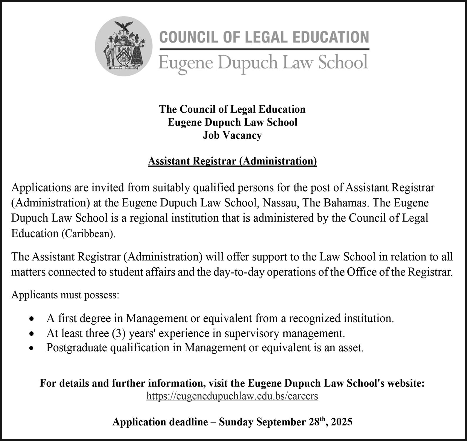 NOTICE is hereby given that ADLET PETIT of Sunrise Road, Blue Hill Road, New Providence, Bahamas is applying to the Minister responsible for Nationality and Citizenship, for registration/ naturalization as a citizen of The Bahamas, and that any person who knows any reason why registration/naturalization should not be granted, should send a written and signed statement of the facts within twenty-eight days from the 16th day of September, 2025 to the Minister responsible for nationality and Citizenship, P.O. Box N-7147, Nassau, Bahamas.