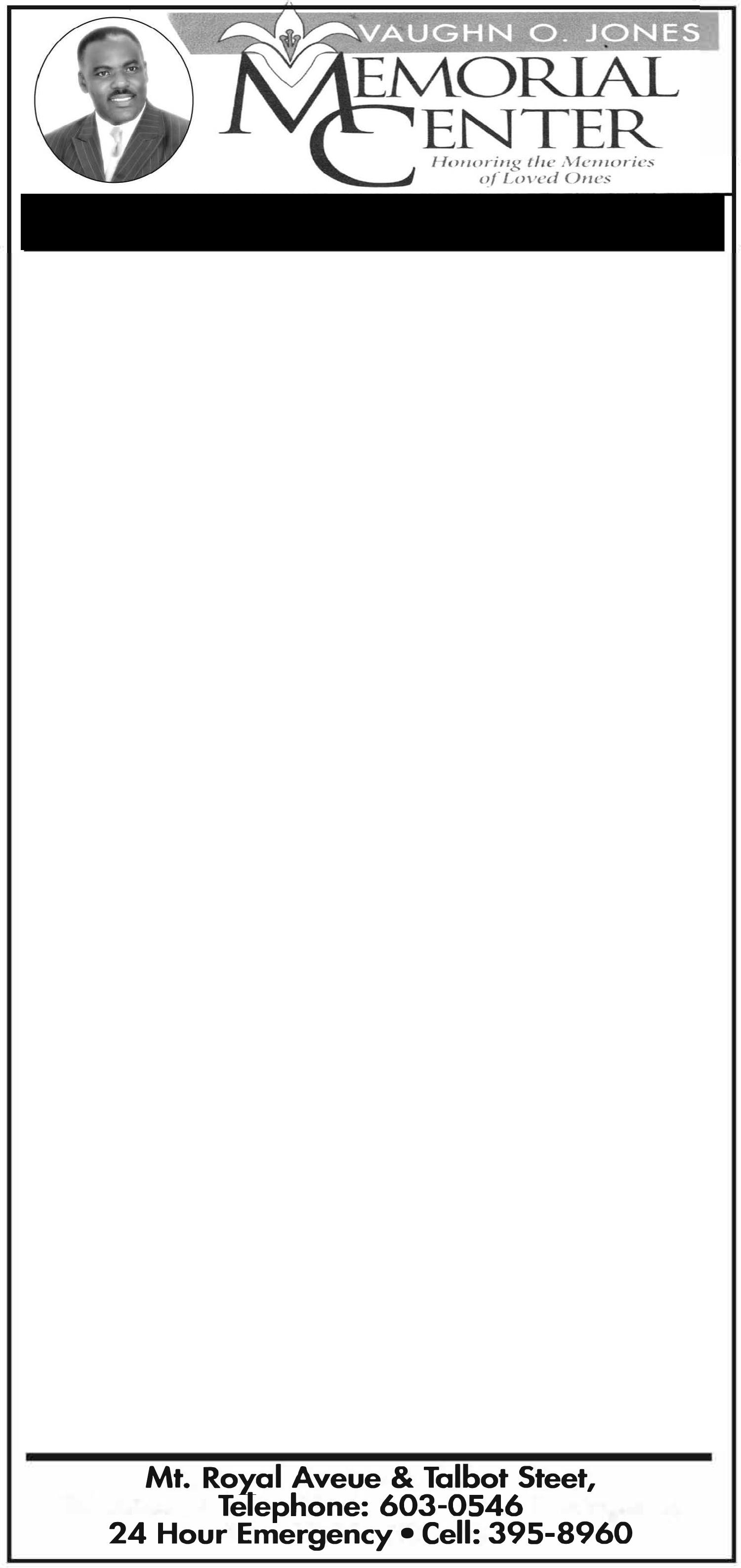 iewing will be held in the Legacy Suite of Vaughn O. Jones Memorial Center, Mt. Royal Avenue and Talbot Street, New Providence on T DA Th rsday from am to pm and on at rday at the Ch rch from noon ntil service time.