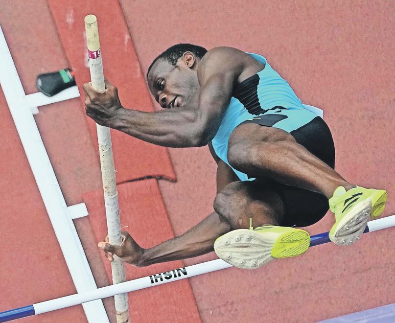 THOMPSON, of The Bahamas, competes during the men’s pole vault decathlon and high jump at the World Athletics Championships in Tokyo, Sunday, September 21, 2025. (AP
