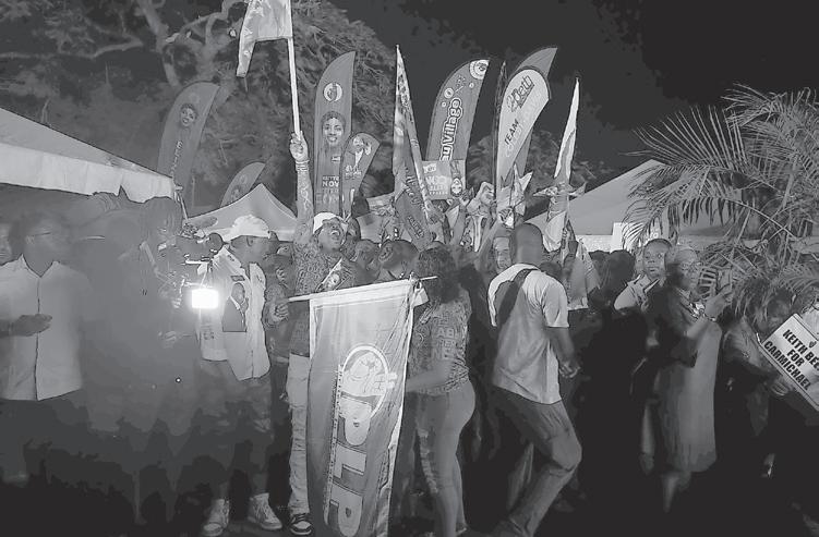 The energy built steadily throughout the evening as supporters danced in the aisles, jumped to the beat of junkanoo rhythms, and erupted into coordinated chants that echoed through the crowd. Every major speaker was greeted with cheers, horn blasts, and rhythmic drumming. As the programme reached its climax, fireworks exploded overhead, lighting up the night sky and sending the already frenzied supporters into a uproar.