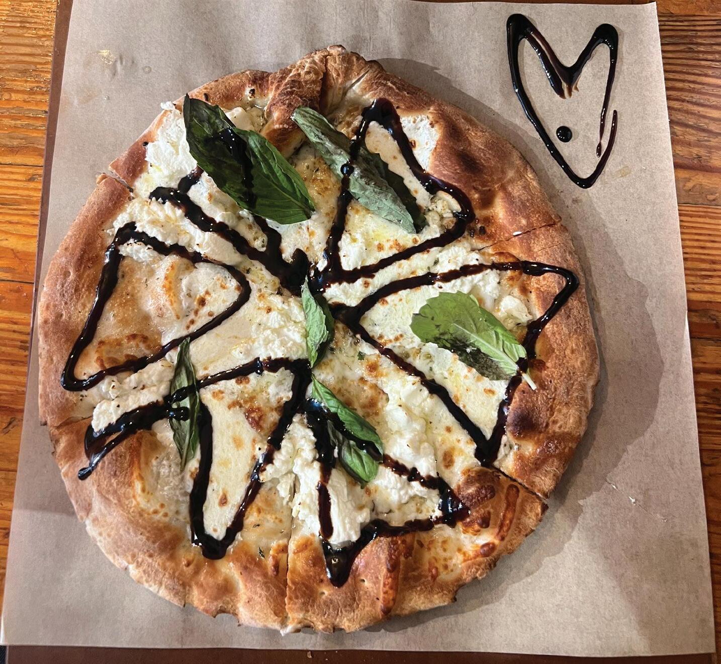 The Bianco Verde with added balsamic drizzle at Snap Custom Pizza in Bryn Mawr.