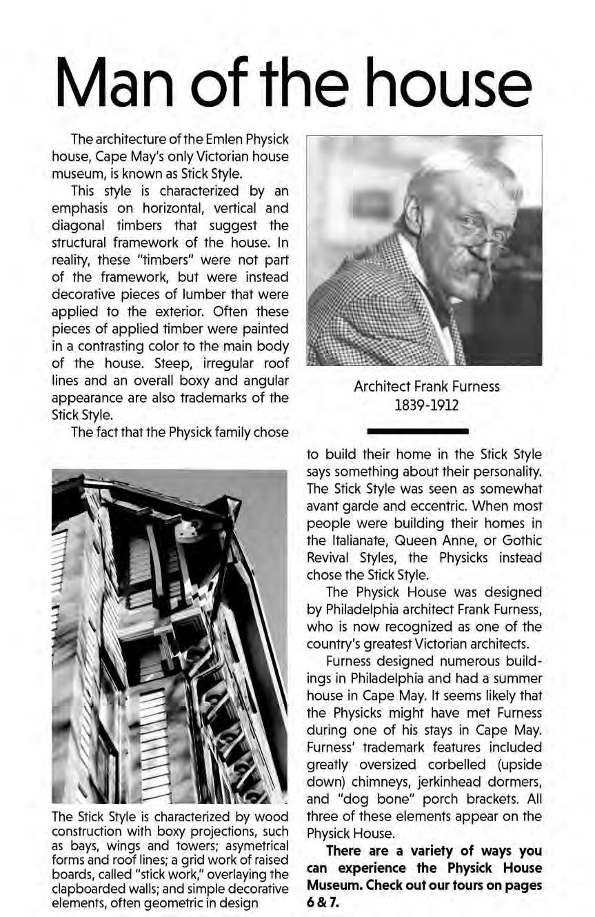 Immerse yourself in the ultimate Cape May experience as our knowledge able guides first take you through the town’s Historic District and then visit the Physick Estate...SEE PAGE 10