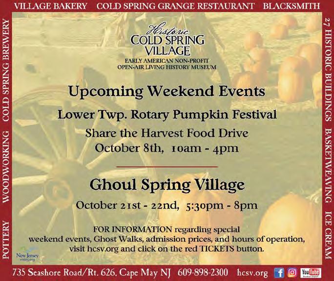 Historic Cold Spring Village- 10am-4pm. Ghost Walk, 8pm. 720 Route 9, Cape May. Call 609-898-2300. (see page 70)