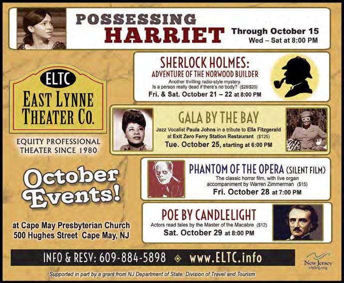 Step back into the Cape May of more than 100 years ago and see how the wealthy lived and played at the town’s only Victorian house museum. Also visit the Es tate’s Carriage House to see “The Victorian Tool Box: Necessities, Curiosities, Frivolities” exhibit in the Carroll Gallery through Oct. 31 (see page 12). The first floor of the Physick House Museum is fully accessible.