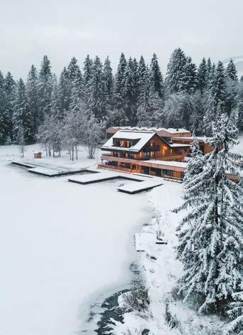 Die Architektur Beim Bau wurde sehr auf Regionalität geachtet. „Wo immer möglich, wurde heimisches Holz verwendet. Sei es als konstruktiver Baustoff, Oberfläche im Innenbereich oder unbehandeltes Lärchenholz, das die neuen Fassaden dominiert. Durch Bewitterung nähert sich dessen Farbe im Laufe der Zeit immer mehr der Farbe des Waldes an“, erklärt Architekt Sebastian Mitterer vom Team der Firn Architekten. „Die Gebäude altern so in Würde und werden Teil der natürlichen Umgebung.“ Für das „grüne“ Erschei nungsbild sorgen außerdem die begrünten Dächer.