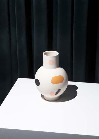 Für all diejenigen, die zu Hause Harmonie einziehen lassen möchten. Lola ist eine Kollektion von femininen und zugleich verspielten dekorativen und funktionalen Vasen und Gefäßen. Die ausdrucksstarken Formen und grafischen Muster der Stücke sind von Papierausschnitten und Kunstdrucken inspiriert. Die kühne grafische Kombination von Formen macht jede Vase zu einem Unikat. Handgefertigt und handbemalt in Montréal, Kanada.
