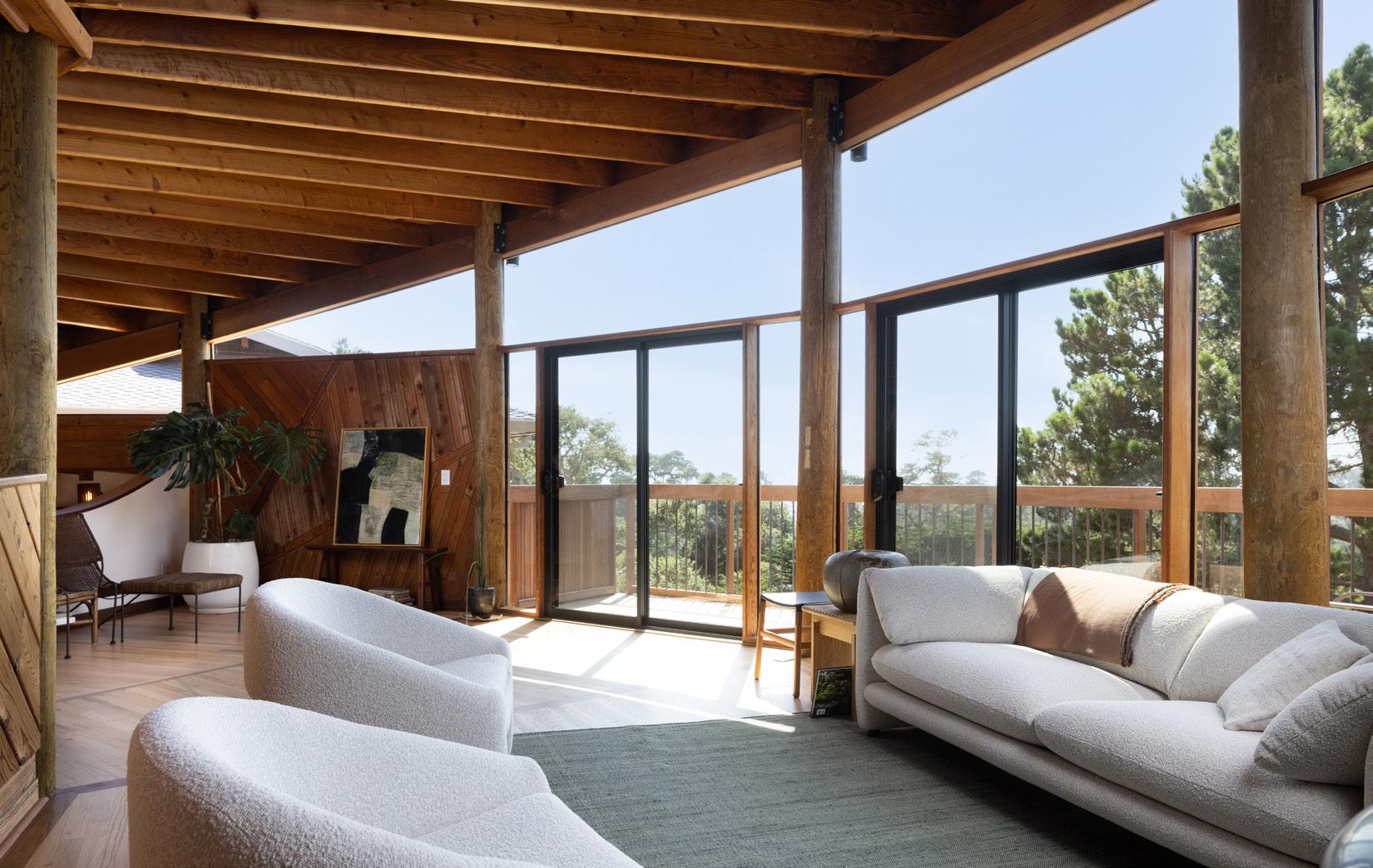 This architecturally significant home known as “The Owl House” was the only house in Carmel-by-the-Sea designed by renowned architect, Mickey Muennig, offering a terrific downtown location with Muennig’s unmistakable Big Sur style. The nautilus-influenced redwood structure bears elements of his emergent style that can be seen in his work that followed, including Post Ranch Inn. The circular windows, unique shaped doorways, and meticulous handmade detailing throughout the interior is an impressive work of art from every angle. The Owl House was recently acquired by acclaimed landscape architect Bernard Trainor of Ground Studio Landscape Architects and has undergone an extensive restoration. Features include 3 bedrooms, 3 bathrooms, ~1,700 SqFt of living space, a 450 SqFt garage, and multiple expansive decks overlooking Pescadero Canyon. With world-class beaches, restaurants, and shopping closeby, The Owl House offers a secluded and artistic feel only “the man who built Big Sur” could create.