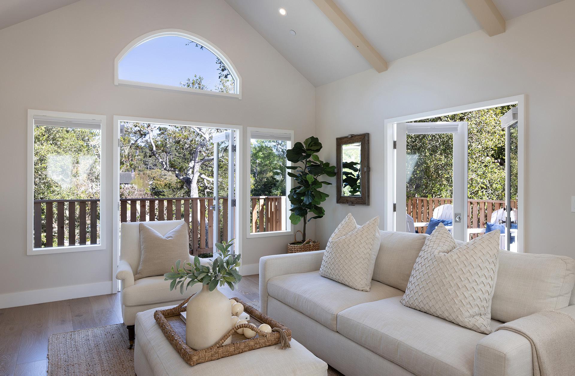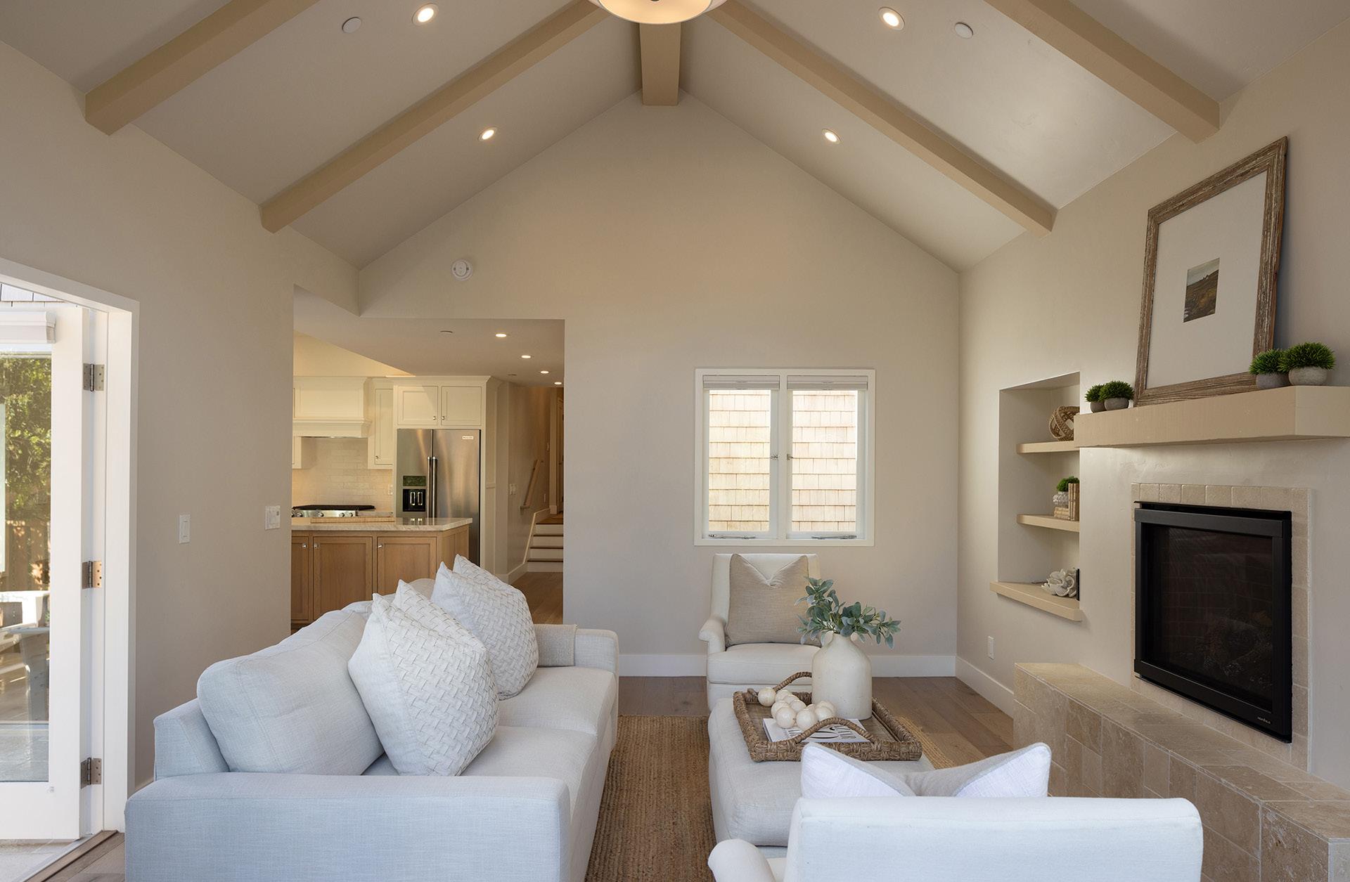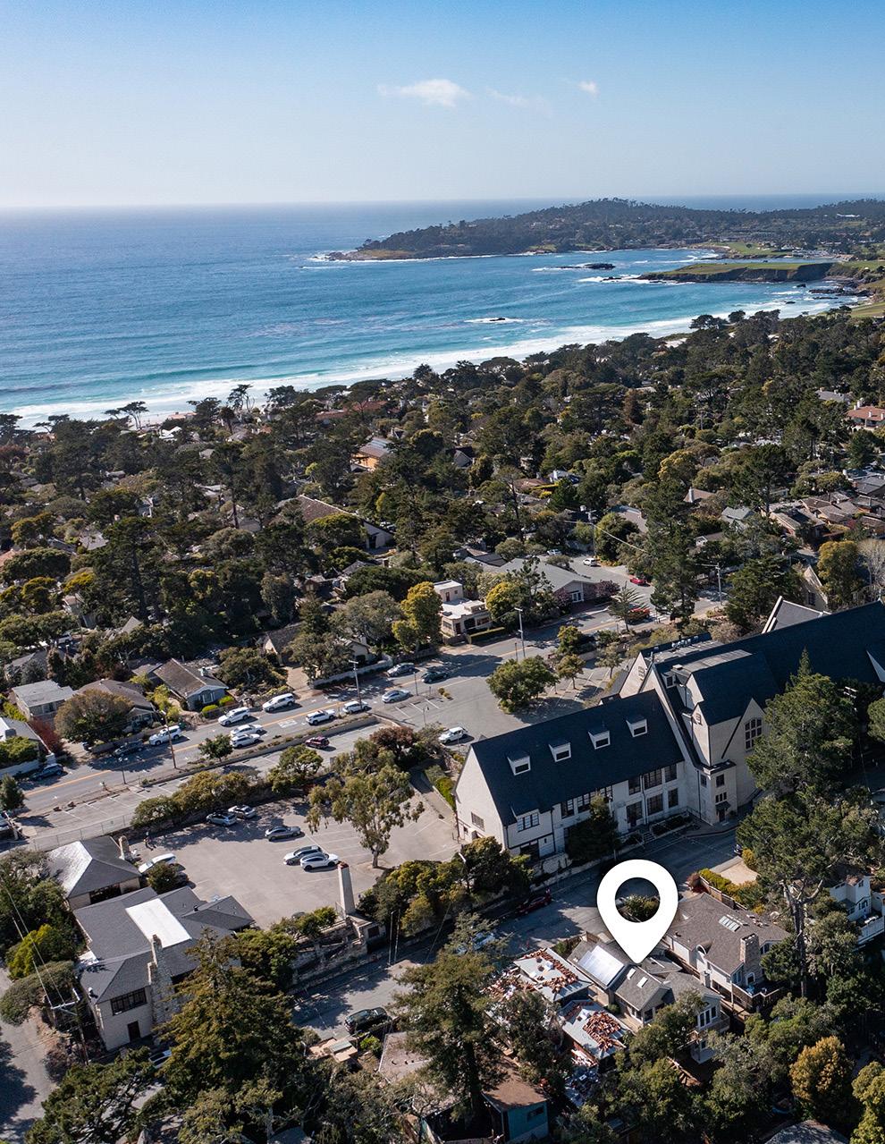 Nestled in the heart of downtown Carmel-by-the-Sea, this newly constructed, exquisite 4-bed, 3.5-bath luxury cottage is a rare blend of Carmel charm and refined craftsmanship. Designed by renowned architect Claudio Ortiz, every detail speaks to timeless elegance and California coastal living. Through the arched front door you are welcomed into a warm and inviting stained redwood accented home with a vaulted-ceiling living room adorned with custom shelving, gas fireplace, and radiant hydronic heat beneath engineered wood floors. The gourmet kitchen features a quartzite Taj Mahal island, skylights, and seamless flow to an Italian travertine deck—perfect for indoor-outdoor entertaining. Large windows with custom UK-imported hardware flood the home with warm southeast light. The main-level primary suite has a spa-like bath with a walk-in shower, underlit honey onyx counters, and a walk-in closet. Downstairs offers three bedrooms, a laundry room, family room, and two guest baths. Thoughtful details include a fresh air system, solar efficiency, tankless water heater, grade level 5 hand-troweled walls, and Montebella onyx bath counters in the guest bathrooms. With all the incredible restaurants, shops, and beaches within walking distance, this is the perfect place to retreat after a day of exploring our village by the sea.