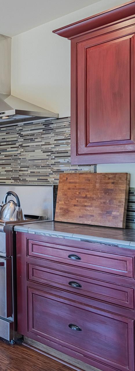 • Gourmet chef’s kitchen equipped with granite countertops, Thermador range, stainless steel appliances, and custom cabinetry