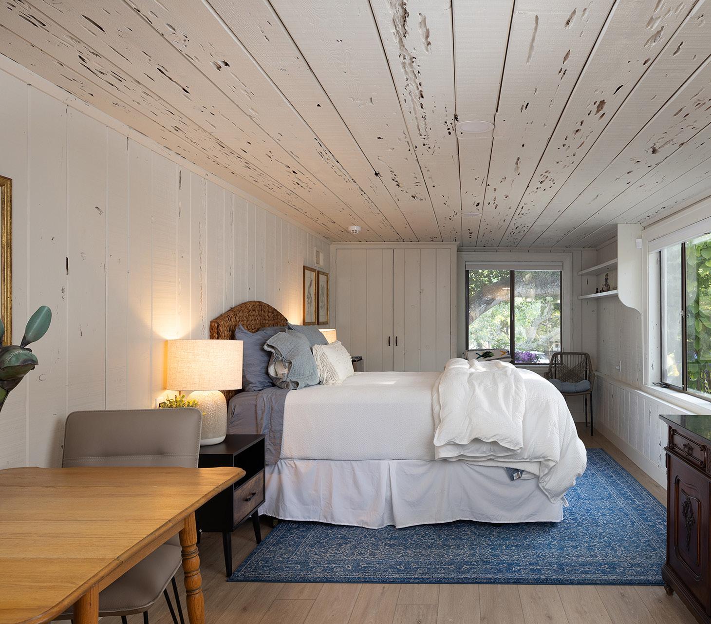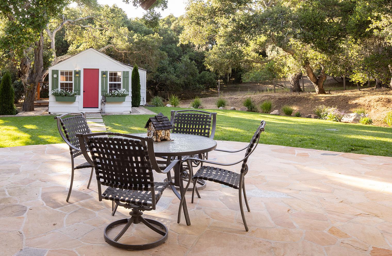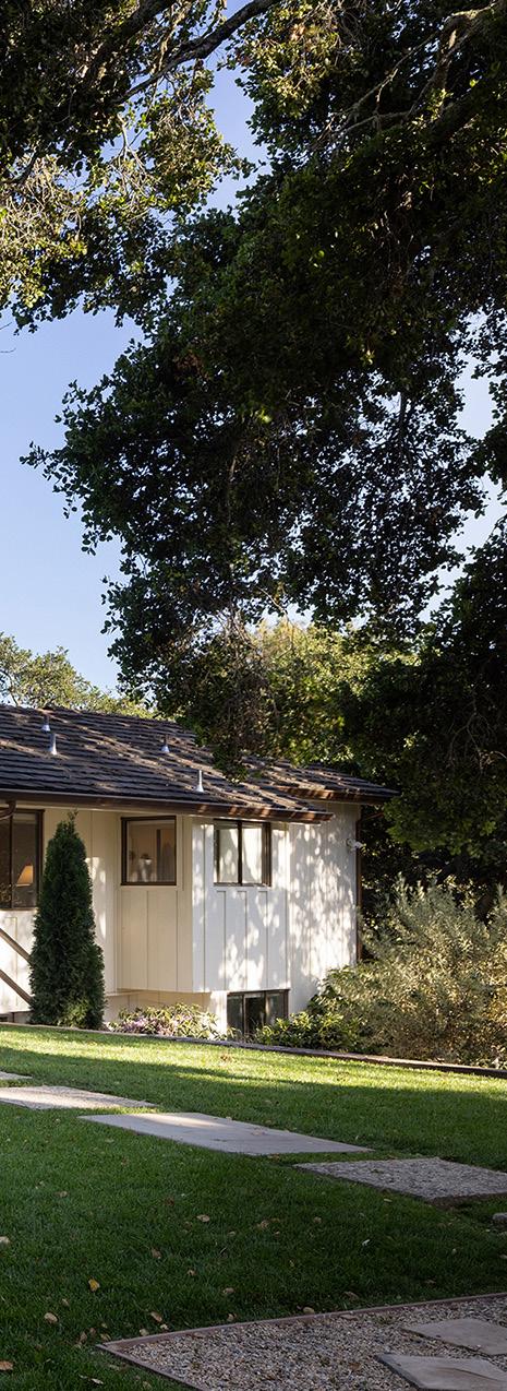 Located in the sought-after La Rancheria neighborhood of Carmel Valley, this private ~3 acre estate offers serene views of the surrounding Santa Lucia Mountains. Meticulously updated, the ~2,315 sq ft home features 3 bedrooms and 3.5 bathrooms, showcasing an openconcept design with vaulted wood-beam ceilings, original pecky cedar paneling, and generous windows that flood the interiors with natural light. The chef’s kitchen boasts new high-end appliances and flows seamlessly into spacious indoor and outdoor entertaining areas, including a covered patio ideal for al fresco dining and an expansive lawn. A luxurious primary suite includes a convenient laundry room, dual vanity, soaking tub, and peeks into the surrounding forest. Beautifully landscaped with native gardens and mature oaks, the property includes a barn, ample parking, a 371 sq ft full guest house with a kitchen, and plans for a three-car garage. Just minutes from both Carmel Valley Village and downtown Carmel, this serene retreat blends tranquility with convenience in one of the area’s most prestigious enclaves.