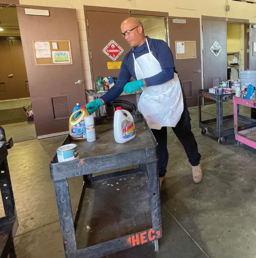 Trained staff like Edwin (center) and Luis (below right) properly sort and store the chemicals at HEC3.