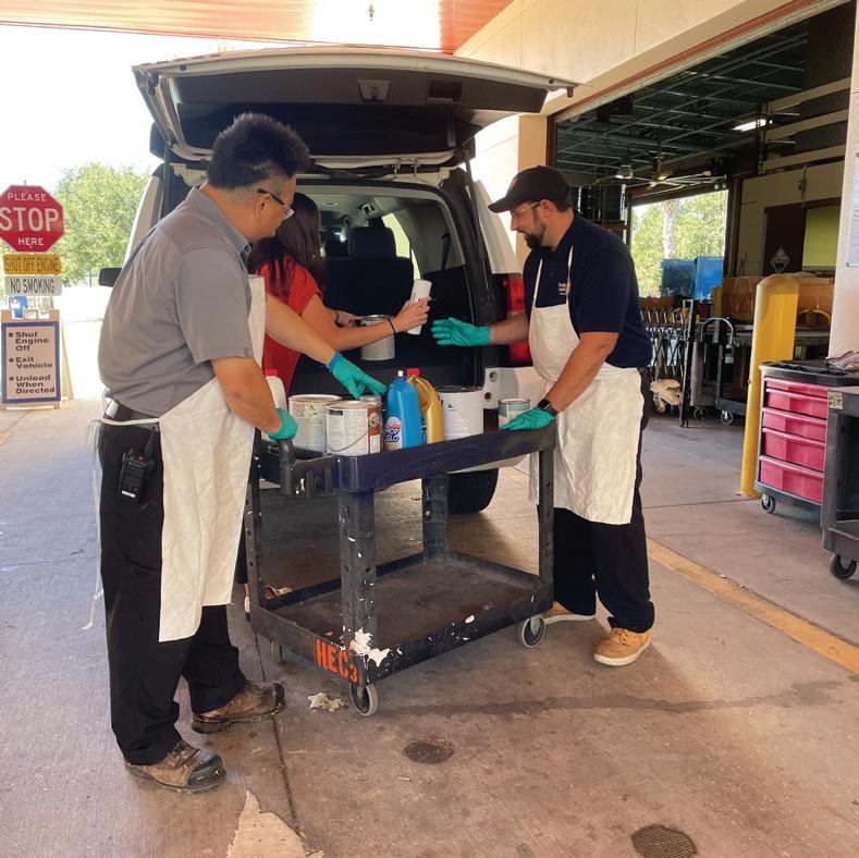 It's easy to drop off your unwanted chemicals at HEC3. Drive up to the stop sign, turn off your car, and unload the chemicals onto the cart. Helpful staff are there to assist!