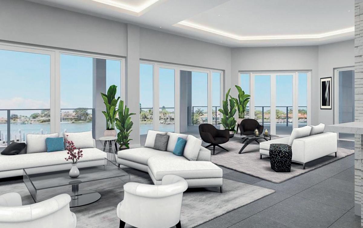 Brand new! Brought to life with master ful modern Miami minimalist design elements, this astonishing luxur y estate boasts towering ceilings, lavish materials and precision work manship throughout its 6,800-total-sq.ft. Superb gourmet kitchen, brilliant all- en suite baths, terrific media room, executive office and huge water front balconies Offered for $6,395,000.