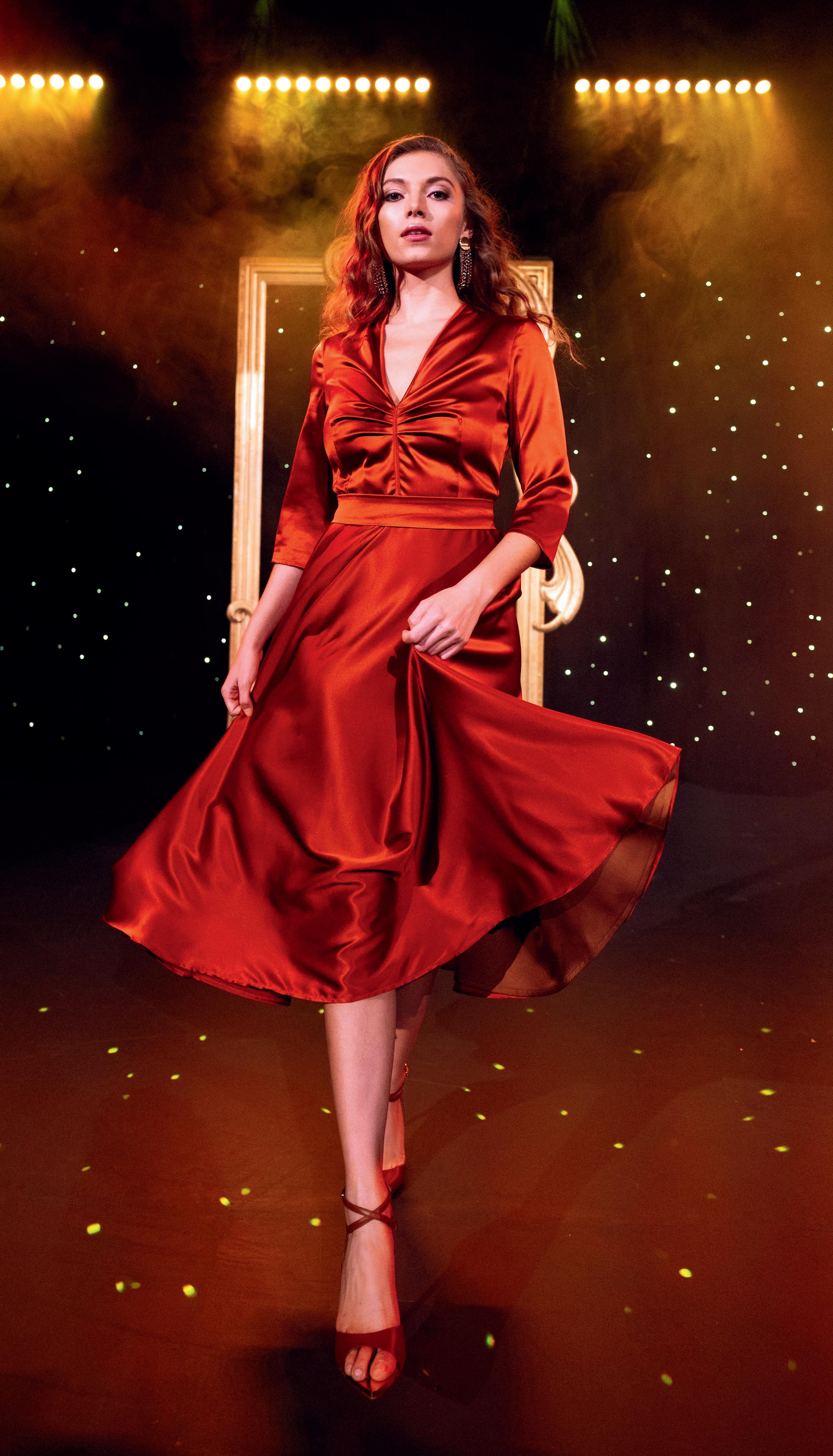 Tropical Rose midi dress. $221. ZK Original. zkoriginal. com. Jenny Bird ear climbers, $138. Vanessa Baroni gold-tone necklace, $254. Penelope T, Tampa. Kulika gold boots, $70. Nordstrom Rack, 1702 N Dale Mabry Highway, Tampa. nordstromrack.com.