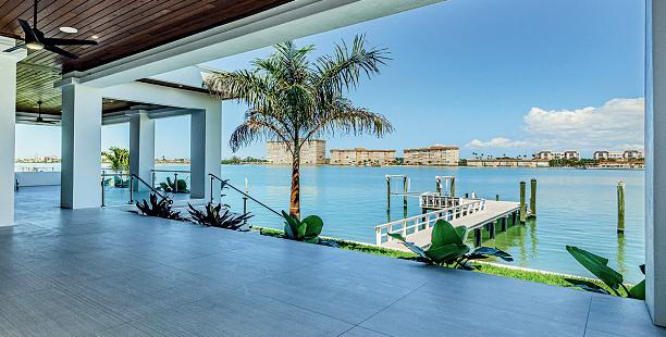 This uncommon 6,877-total-sq ft water front estate represents the best of boating and the beach! Soaring 20-ft.-high, 520-sq.ft. entr y foyer opens to a dynamic 720-sq.ft. U-shaped enter tainment deck overlook ing pool/spa, with stunning panoramic open water views Easy walk to beach, easy boat to Gulf Offered for $4,495,000.