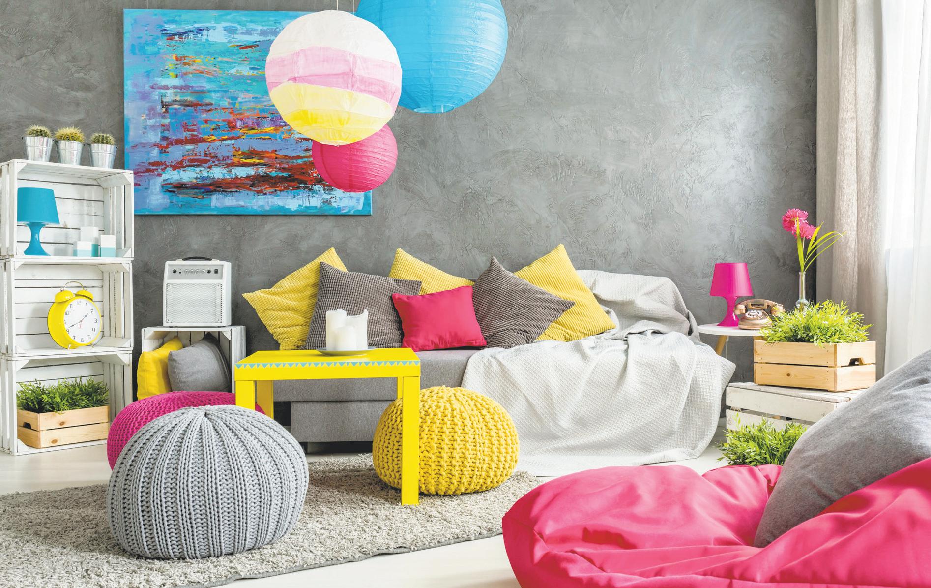 Don’t focus only on the walls for artistic opportu nities the floors can be great spaces for expres sion, too. Funky vinyl flooring in splashy patterns can refresh a room that was only average before. Or opt for interesting rugs in cool colors or shapes to add some quirk beneath a table, desk or chair.