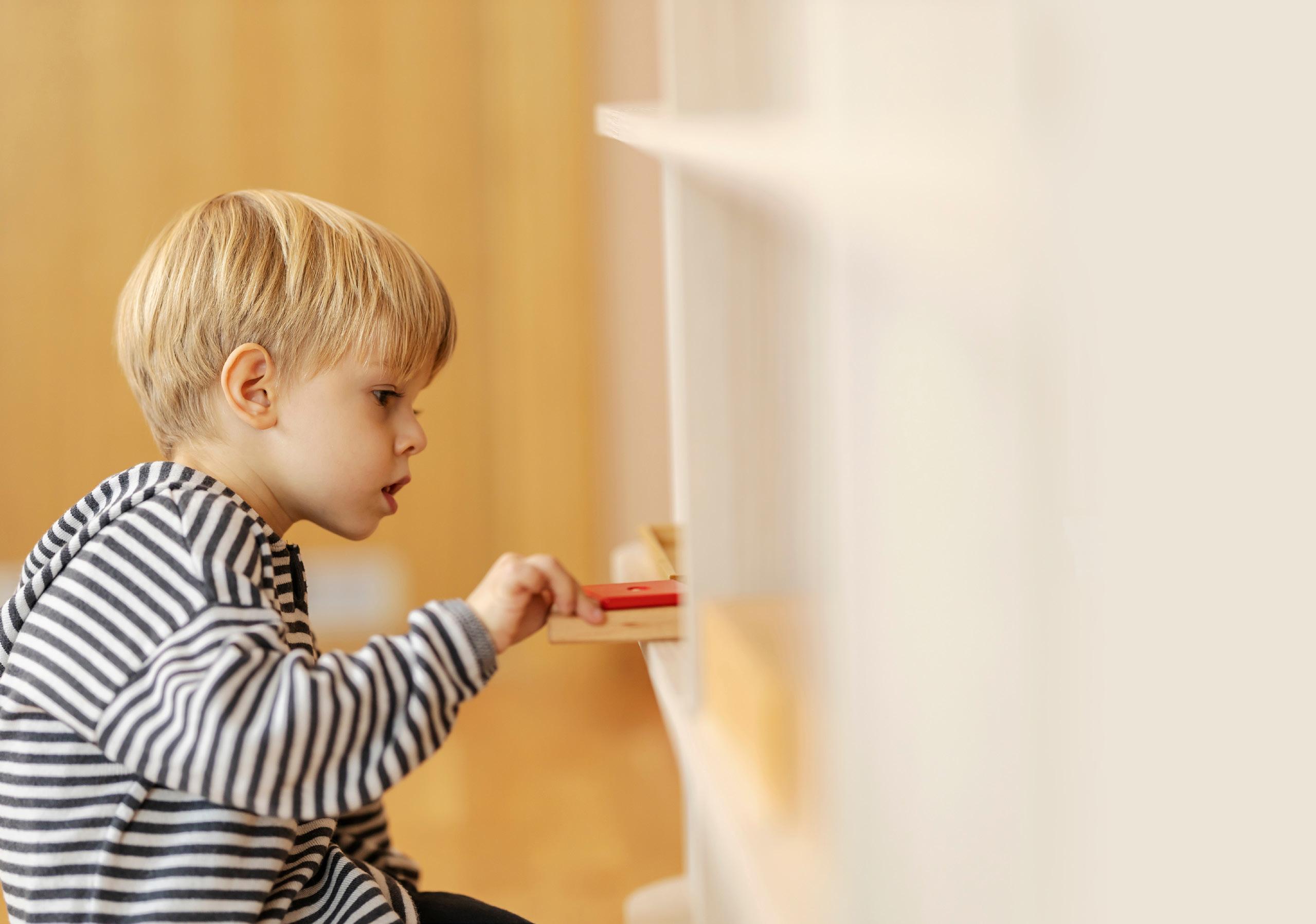 When implementing Montessori in your home, shelves can help you organize the activities you have for your child, maintain order in your space, and inspire independence in your child. Through the use of organized shelves that are accessible to your child, you will start to feel the transformation of your home. Almost overnight, you will see that activities have a home, your child is curious about their environments, and the arrangement of toys removes clutter and overwhelm. It may be time to ditch that toy box and find just the right shelf!