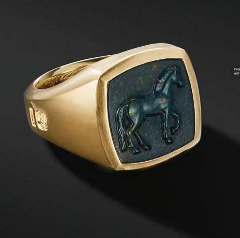 David Yurman Petrvs Horse Signet Ring in 18K Gold with Bloodstone ($5,950 davidyurman.com)