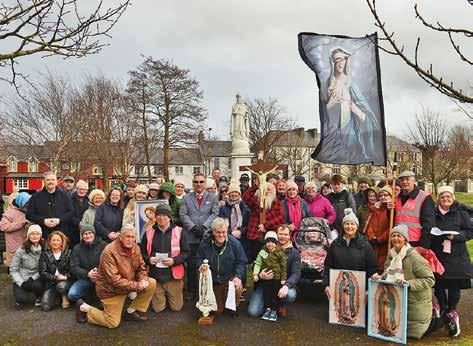 ABOVE: Celebrating St. Brigid’s Day in Tralee, on Sunday, with a procession from The Square, Tralee to Christ The King, statue in Ballymullen Park, Tralee, where prayers were said. Statue of Our Lady and flags. Photo: John Cleary and Philip Fitzgibbon.