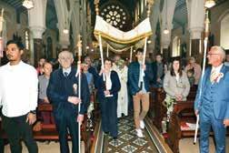 ABOVE: The Corpus Christi procession returns to Holy Cross Dominican Church Tralee on Sunday afternoon after 107 years since (1917) for the 800 years anniversary of the Dominicans arriving in Ireland. Fr. Tadhg Fitzgerald carries the Blessed Sacrament to the altar. Fr. David McGovern O.P. Fr. Tadhg Fitzgerald P.P. and Fr. Michael Quinlan celebrated Benediction with a Church packed to capacity.