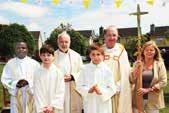 ABOVE: The Corpus Christi procession from Our Lady and St. Brendans Church Tralee, was led to Hawthorn Drive, Tralee by from left Fr. Amos Ruto Surungai, Fr. Mario Jachym, and Fr. Padraig Walsh P.P. and Lorna O’Sullivan, altar boys Jonathon Slyun and on right Brian O’Dowd.