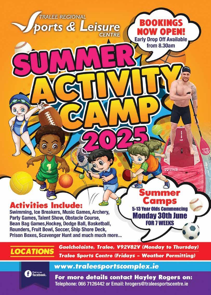 Summer Camp: July 28–Aug 1st, €50 per child, €80 family.