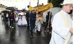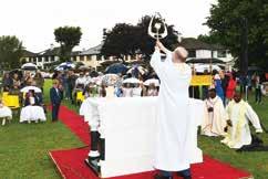 procession into St. Brendans Park with Fr. Amos Ruto Surungai carrying the Blessed Sacrament in the Monstrance for Benediction in Cahermoneen Park.