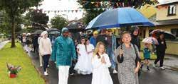 : Residents at St. Brendan’s Park take the brollys down for a few seconds as the Corpus