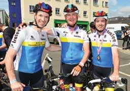 ABOVE: Crossing the finishing line in Killarney on Saturday, after spending 7 hours on the Ring of Kerry Cycle, fundraising for the main charities in Kerry, l-r Michael Aherne, Firies, Michael O’Callaghan, Tralee and Niall McCarron, Listowel.