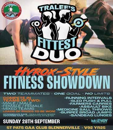 Join us Sunday, Sept 28, for a Hyrox-style fitness challenge in Blennerville. Teams of two (male/ female/mixed) welcome. Sign up via Eventbrite.