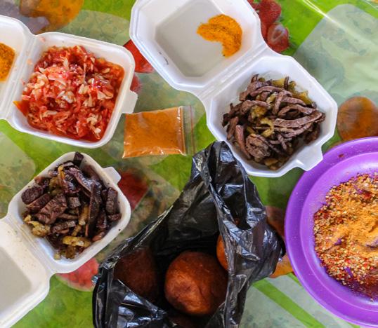 Kapana – Namibian street food Eating local gives you way more bang for your buck, plus no visit to Windhoek is complete without a taste of kapana. Imagine slivers of beef, flame grilled and topped with or dipped into a burnt orange-coloured spice mix – the perfect blend of sweet, spicy and umami. Kapana goes down best with fat cakes (deep fried bread balls) and tomato and onion relish prepared on site. Locals say the hub for the best kapana in town is the Single Quarters market in Windhoek’s Katutura suburb.