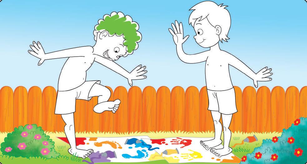 My HAIR is green. My ARMS are pink. My HANDS are orange. My LEGS are blue.