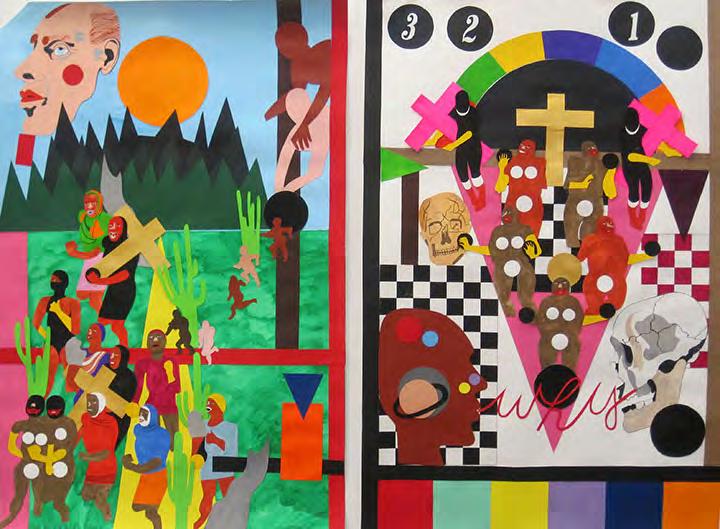 above: Nina Chanel Abney, First and Last, 2012. Acrylic and cut paper collage on paper, 38 × 51 inches (96.5 × 129.5 cm). Collection of the Nasher