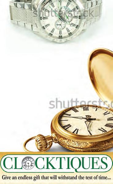 EVERY TICK TOCK MATTERS AT CLOCKTIQUES! We specialize in repairs of antique clocks and watches from the 1600's to present. We have a fully stocked showroom for your enjoyment and shopping pleasure. Looking for a gift what better than a timepiece that could become your family heirloom for generations to come. Watch battery replacement and adjustment available. All repairs done in our fully equipped repair shop on site. Clocktiques, 2004 South Main St., Suite 104, Wake Forest, 919-556-8963. www.clocktiquesrc.com