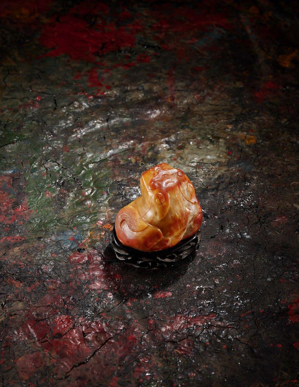 Gilt bronze with polychrome painting and gilding. Partly encrusted red and black patina 24 cm (h.) x 26 cm (w.) x 6 cm (D.)