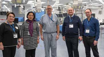 A delegation from Uzbekistan’s Ministry of Health visited Buffalo in early February, stopping to visit several sites at the University at Buffalo as part of a tour of the U.S. to bolster the Asian country’s public health capabilities. After stops at UB’s Clinical and Translational Science Institute and the School of Public Health and Health Professions, the Uzbeki scientists learned about the Jacobs School’s medical curriculum and toured the Downtown Campus, including stopping at UBRISE2 Surgical Center, where they were photographed with Michael Rauh, MD, assistant professor of orthopaedics. Photo: Sandra Kicman.