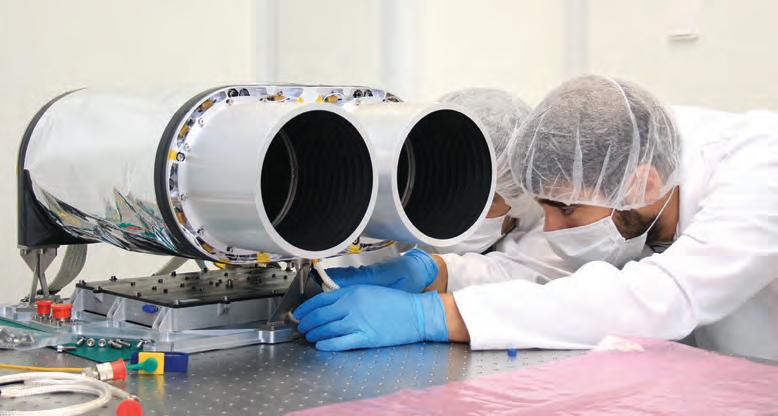 “WeFinal checks of the flight model of the iSIM-170 binocular camera in the Satlantis laboratory. The Satlantis iSIM-90 camera on board a 16U CubeSat platform. This satellite was launched into low Earth orbit in May 2022.