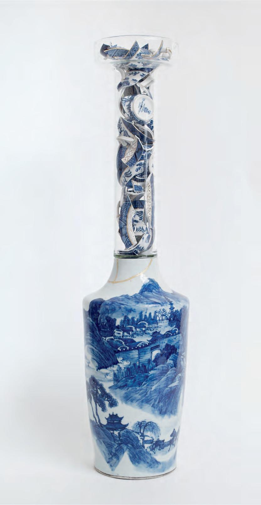 Having left the world of fashion and retrained as a conservator, de Vries spent many years carefully restoring broken ceramics. As he recounted his story to me, it seemed that he had fallen into restoration by accident – much as he had into his earlier vocation of textile design. Yet these accidents, which echo the cracks and damage de Vries celebrates in his work, appear to be soldered to both his life and his art. As he became increasingly fascinated by the imperfections through which makers’ mistakes bear witness to human interventions in the act of creation, de Vries felt a growing desire to express his own artistic voice. ‘As a restorer, there’s a lot of airbrushing and covering up, but I’ve always thought’, explains de Vries, ‘that the mistakes in handmade objects are what make them fascinating. This is why my artistic practice is no longer about restoration: I want to celebrate these pieces in their brokenness.’ Taken as a springboard for his creative expression, accidents become, for de Vries, mementos left by those who created, used, damaged or restored objects – traces that, when considered together, should be understood as memories to seek out and celebrate. For de Vries, these traces are what distinguish artefacts from mere commodities; they are what bestow meaning and value upon them.