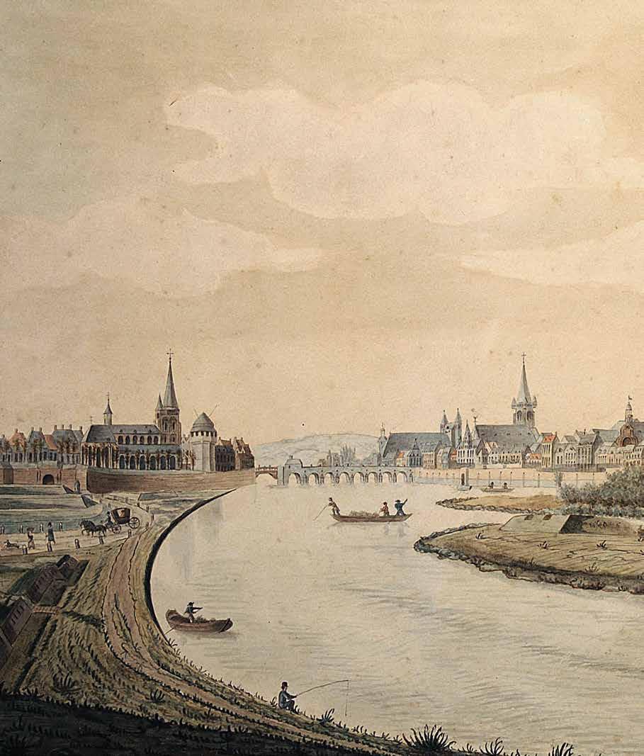 Simon de Bellomonte, Panorama van Maastricht (detail), 1575, ingekleurde gravure, 368 x 503 mm. Historisch Centrum Limburg