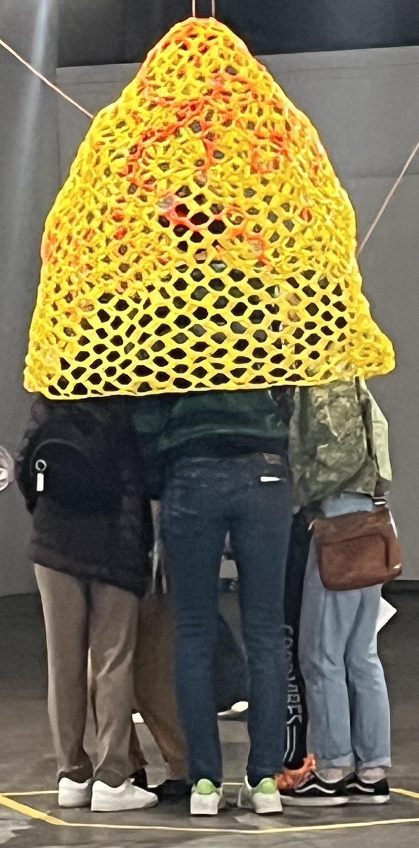 Support is the common theme that stitches together my experiences in the arts at Charlotte. Not only have I been encouraged by faculty and students in the arts, but also from Levine scholars across classes. At the opening and closing reception for Honey Crash, Levine freshmen, sophomores, juniors, seniors, and even an alum were present. In true Levine fashion, they came with thoughtful questions about the exhibit and an exciting willingness to engage directly with my art. For context, Honey Crash is a large yellow and orange beehive “cage” suspended above the ground, so people can walk up into it and get a closer look at the preserved honey bees embedded in the framework. A highlight of getting to watch people interact with my art was when a group of Levine scholars tried to see how many of them could squeeze into the hive all at once.