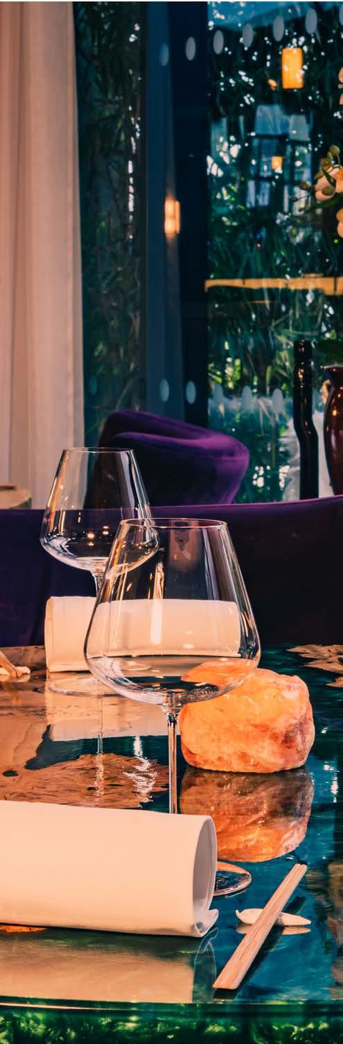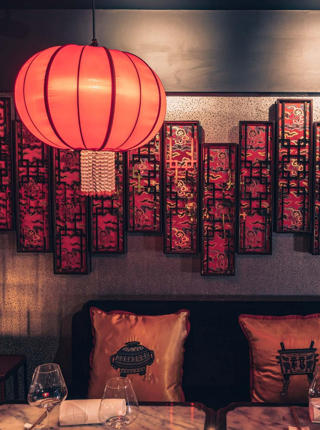 Designed by Terry Kuet of the Hong Kongbased Forbidden City design company, the room’s silk cushions, decorative Chinese screens and ornamental lamps line the room, providing guests with a tranquil and cosy candlelit space to enjoy pre-dinner drinks or snacks below the hubbub of the main restaurant.