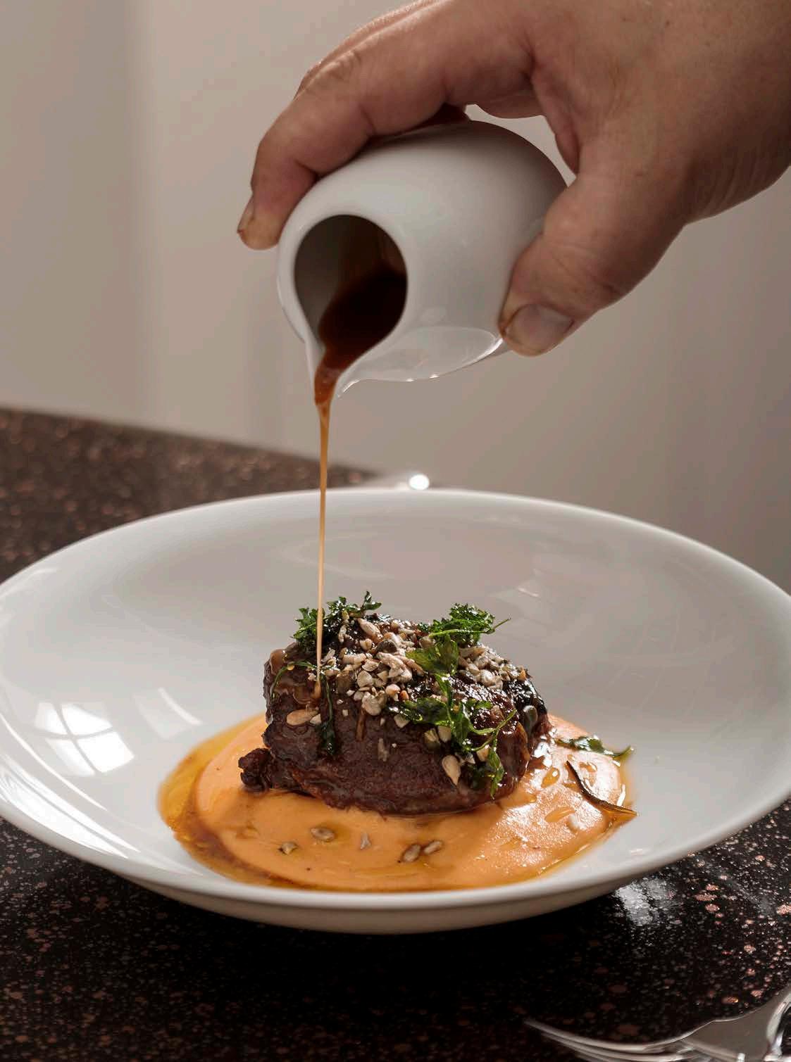 His cooking is process-intensive and his style may be defined as simple in the ingredients chosen, in the emphasis on local produce, in the way every dish is delivered to your table yet at the same time complex in the textures, in the flavours as well as the tastes. A contradiction which Sheldon has the ability to bring together and harmoniously coexist in every plate. A contradiction which makes Sheldon who he is with the reputation he earned in the industry. A contradiction which is evident in Scala’s menu which includes smoked eel and white fish arancina wit spicy mayonnaise, BBQ octopus with soy, yuzu and pickled red cabbage as snacks to start off with and a selection of starters the includes pork Kromesky, with potato rösti, fried egg and Béarnaise sauce and Pan-fried rabbit liver with sourdough bread, sweet harissa and sunflower seeds. The selection of main courses is also a true beauty with a selection to die for that includes, braised local pork cheeks with confer onion, ‘nduja polenta and vin jaune and smoked veal rump with endive, garden parsley and Bagna Cauda. Ah! And for all those with a sweet tooth, they will surely not be disappointed. A classic tiramisu with coffee crunch and cocoa nibs and Almond and Medjool date frangipane are what to expect at the end of every meal at Scala.