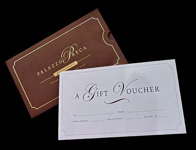 A perfect gift this Christmas, Give your loved ones a Gift Voucher. Vouchers can be purchased online. Palazzo Preca Restaurant 54, Strait Street, Valletta, Malta palazzoprecavalletta.com Tel: 2122 6777