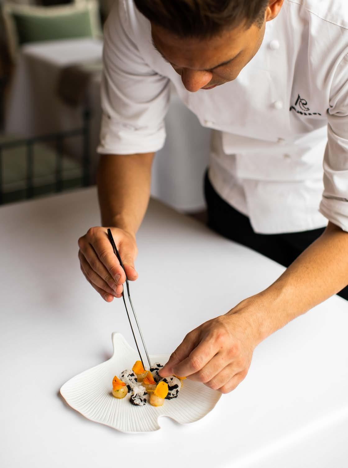 The beauty of this historic location harmonises with Alessandro’s sustainable, pioneering cuisine. With a growing reputation as one of the best restaurants in Florence, he has created three menu options that elevate even the simplest ingredients. Dishes such as Fagottino pasta, made with braised beef peposo, ricotta cheese, Chianina IGP beef tartar and fresh seasonal truffle, or Follonica edible flowers adorn courgette curls, served with lemon ash to create the visually delicious Scarpaccia dish. “Flavour is the essence and identity of who I am,” Alessandro asserts. “My wish is to make the simplest things memorable”.