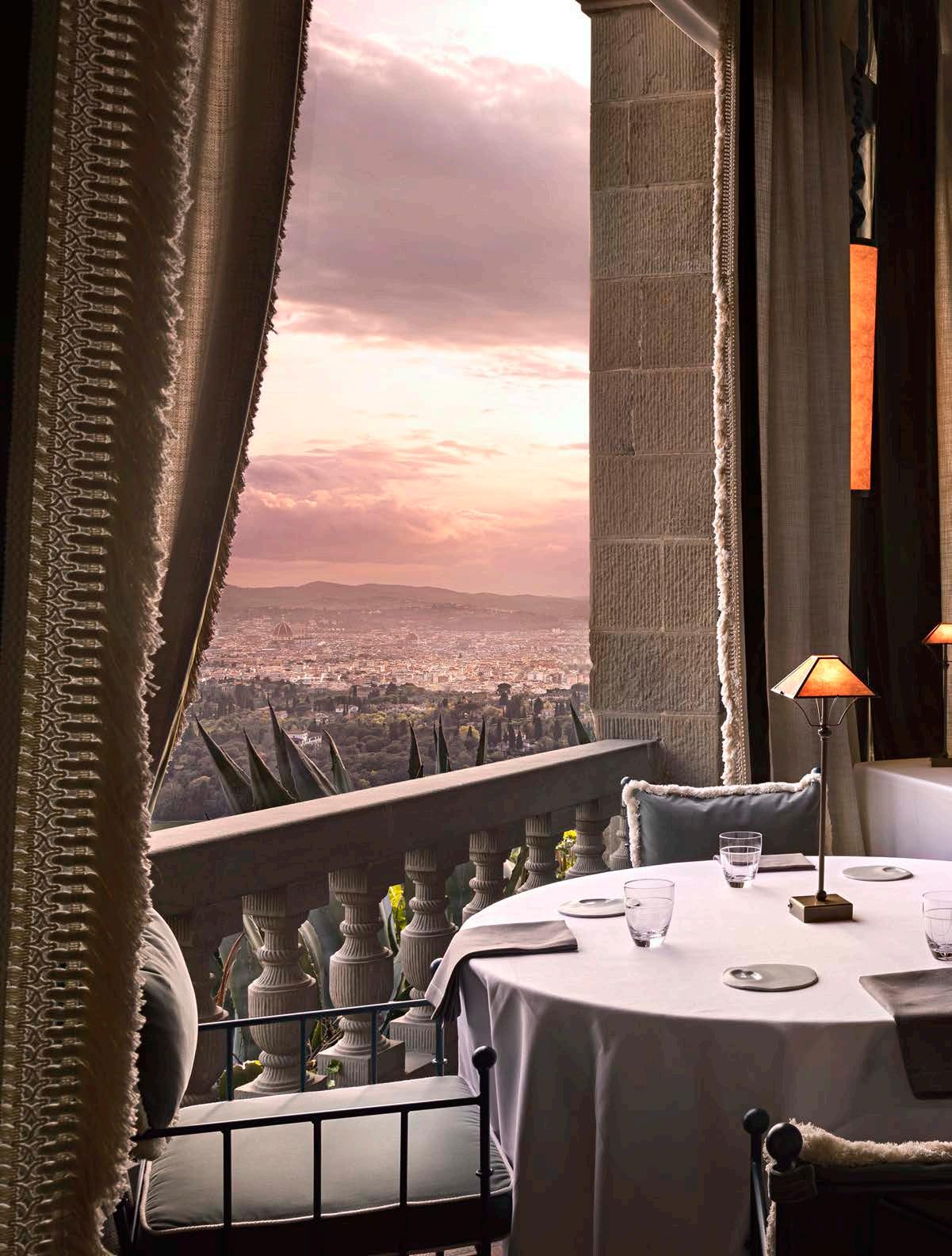 Boasting dramatic views over the Renaissance architecture of Florence, La Loggia, which translates as a roofed open gallery, sits at the heart of the historic hilltop Villa San Michele, A Belmond Hotel.